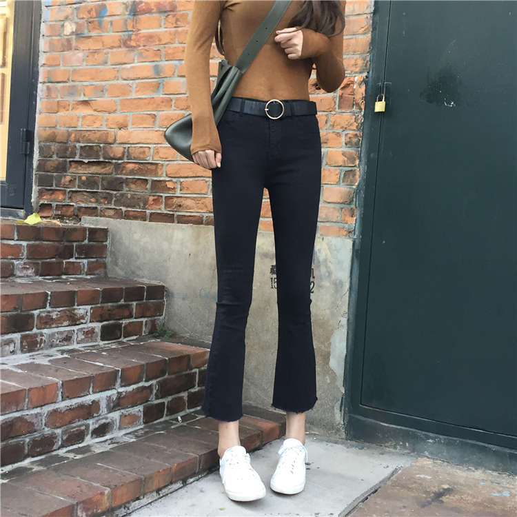 今年流行這種九分設計的喇叭褲了