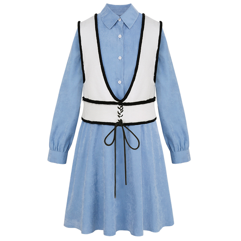 MG小象連衣裙女裝秋冬短款外搭背心2018新款韓版高冷氣質襯衫裙潮