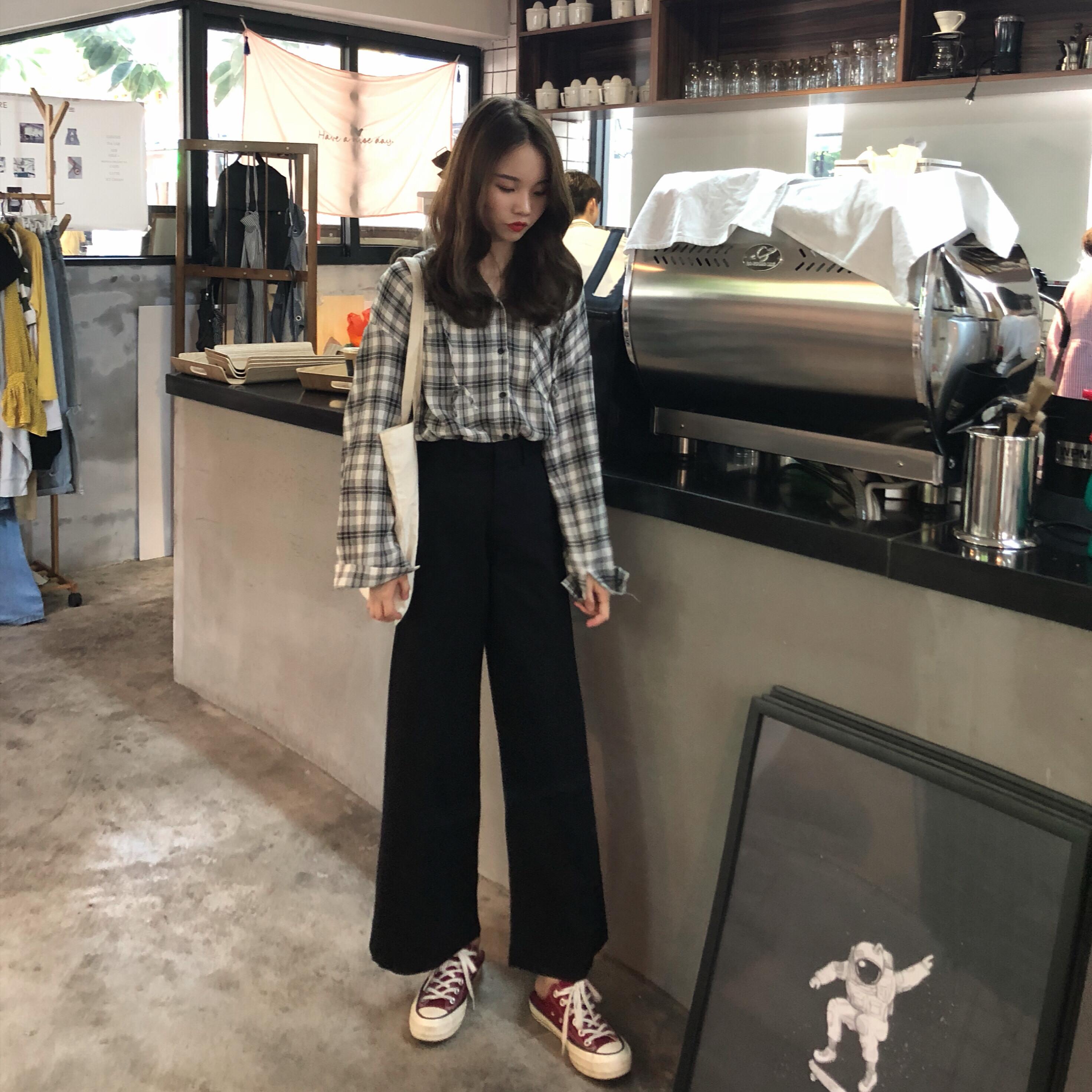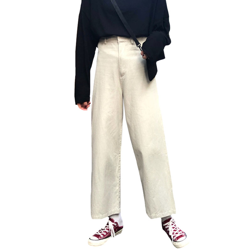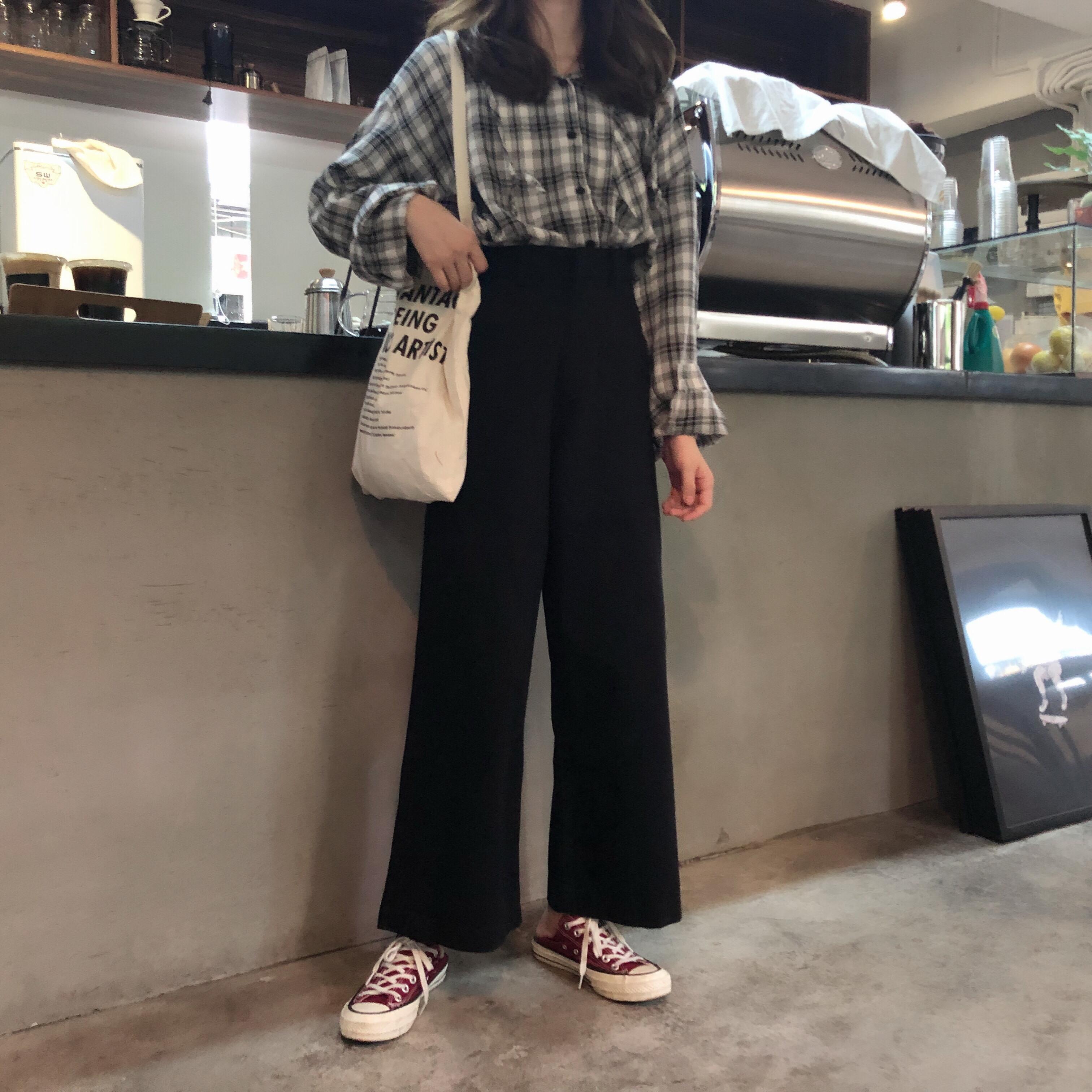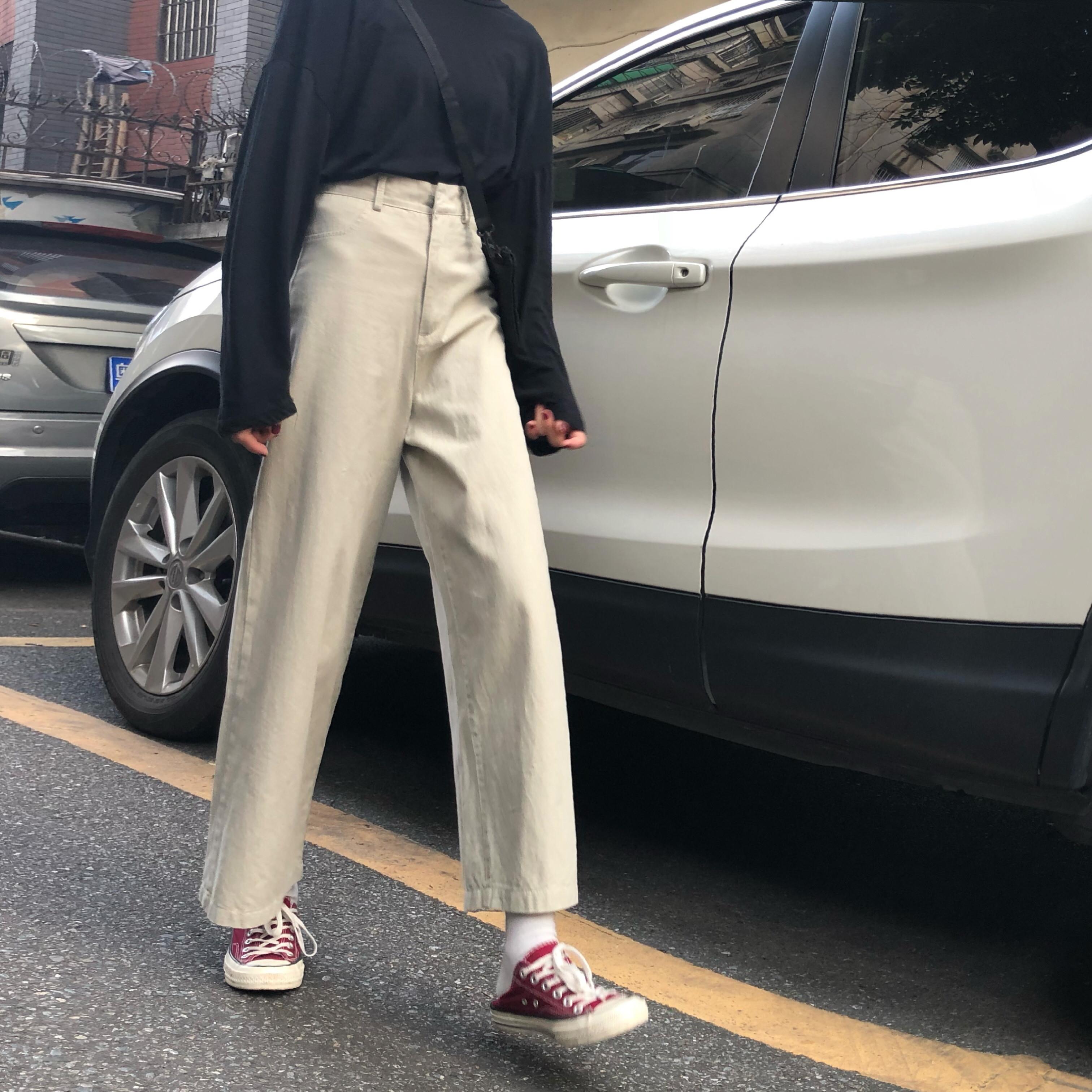 / 秋季女裝韓版純色寬松百搭闊腿褲學生高腰顯瘦直筒褲休閑褲長褲潮