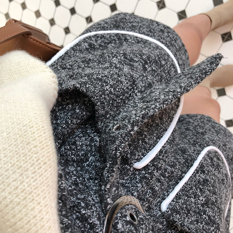 粗毛呢的面料也是比較厚實~
