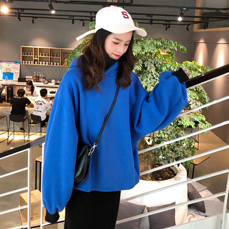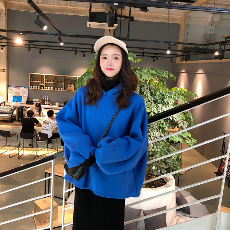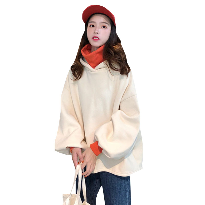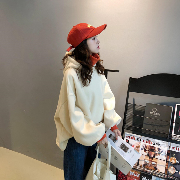 2018新款秋冬女裝韓版拼接高領連帽加絨加厚套頭超火衛衣上衣外套