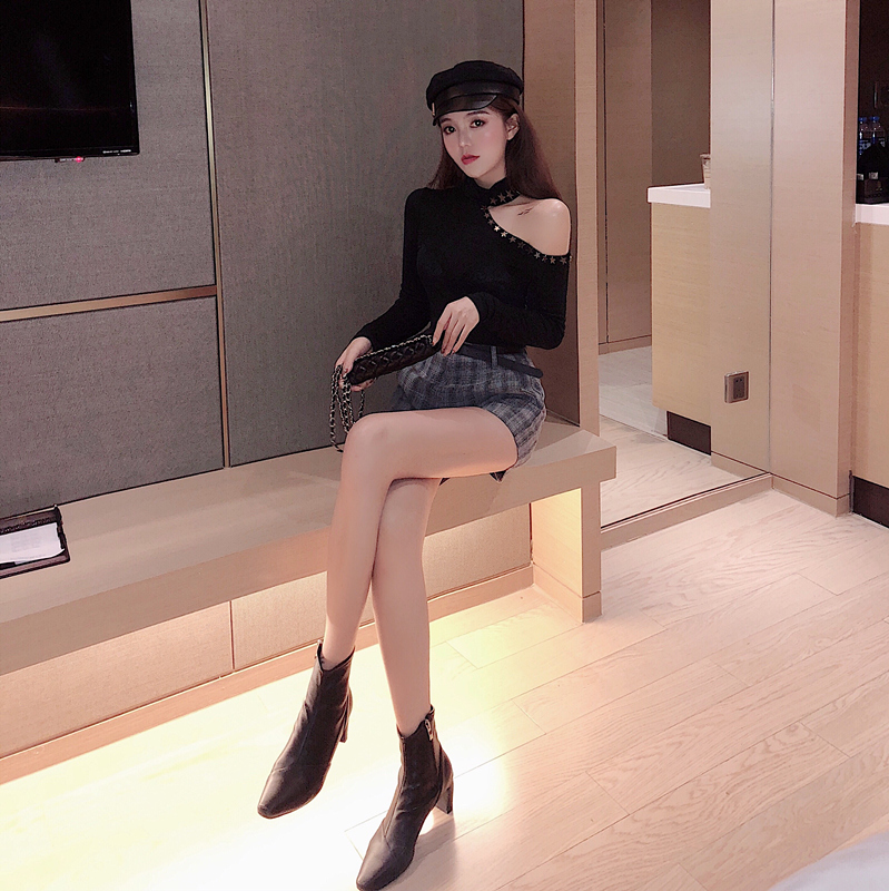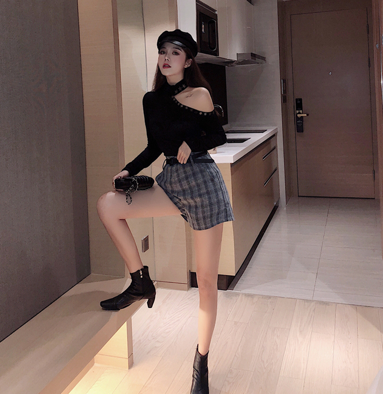 / 設計感套裝女心機露肩T恤高腰格子短褲兩件套秋裝時尚潮2018新款