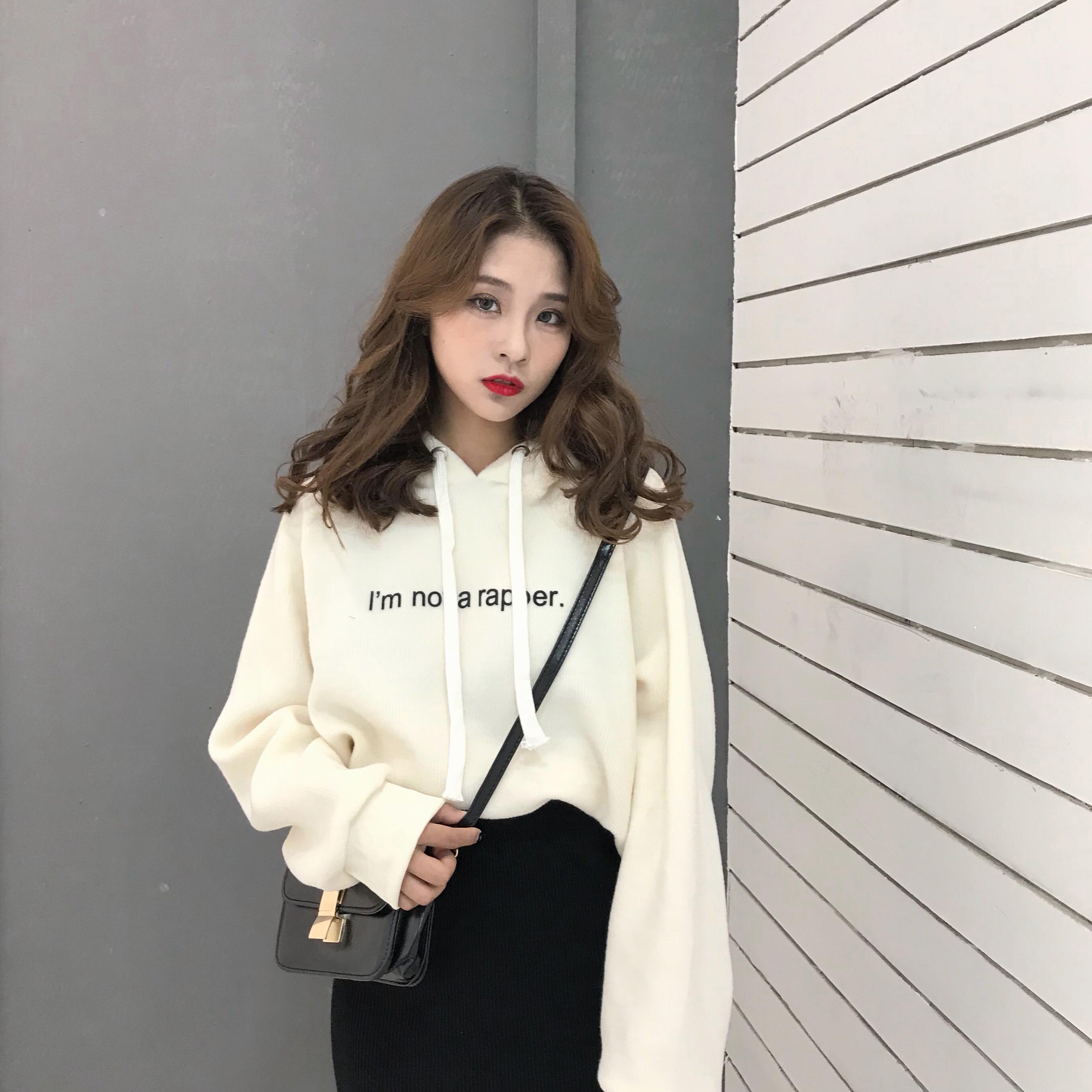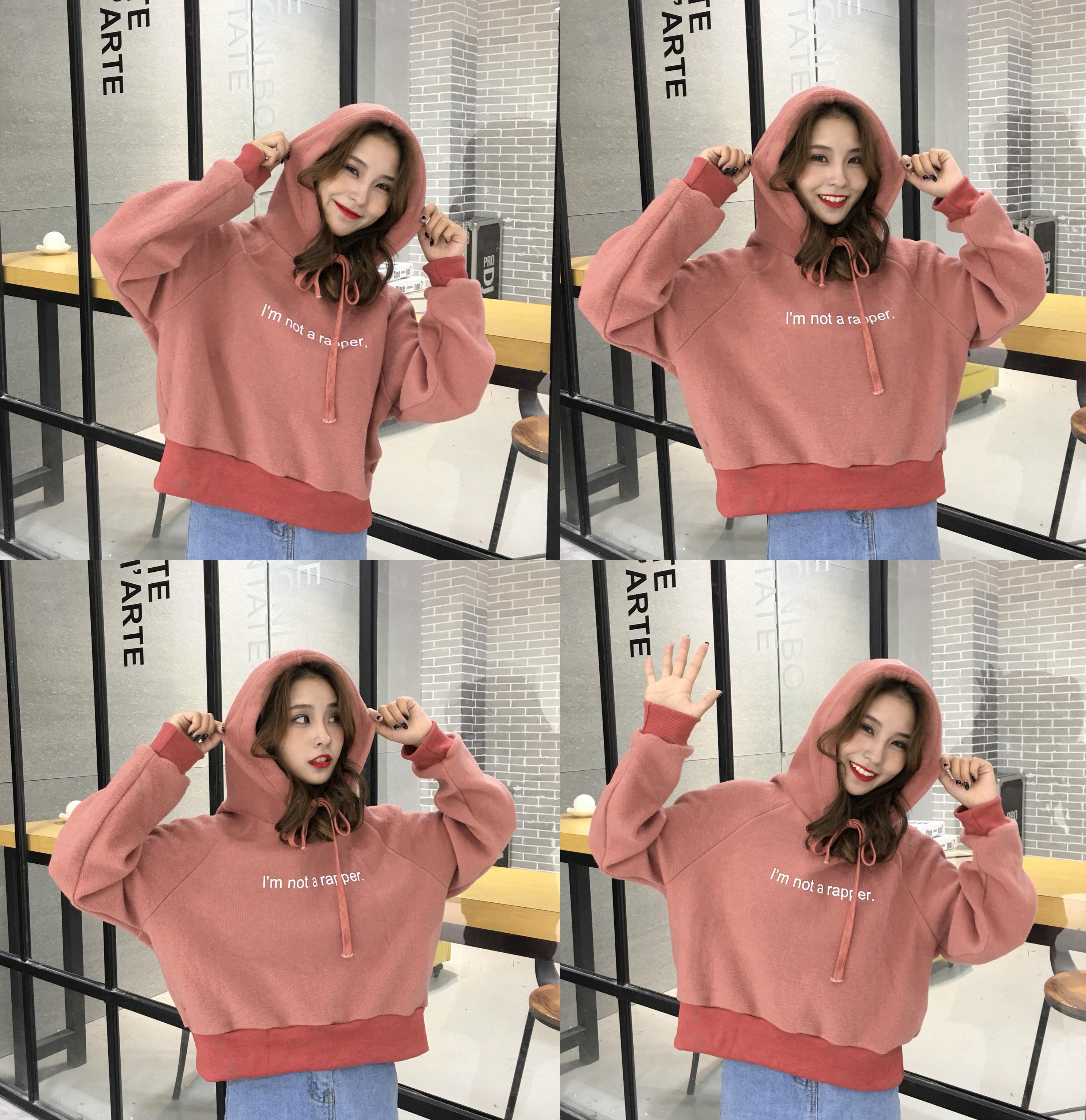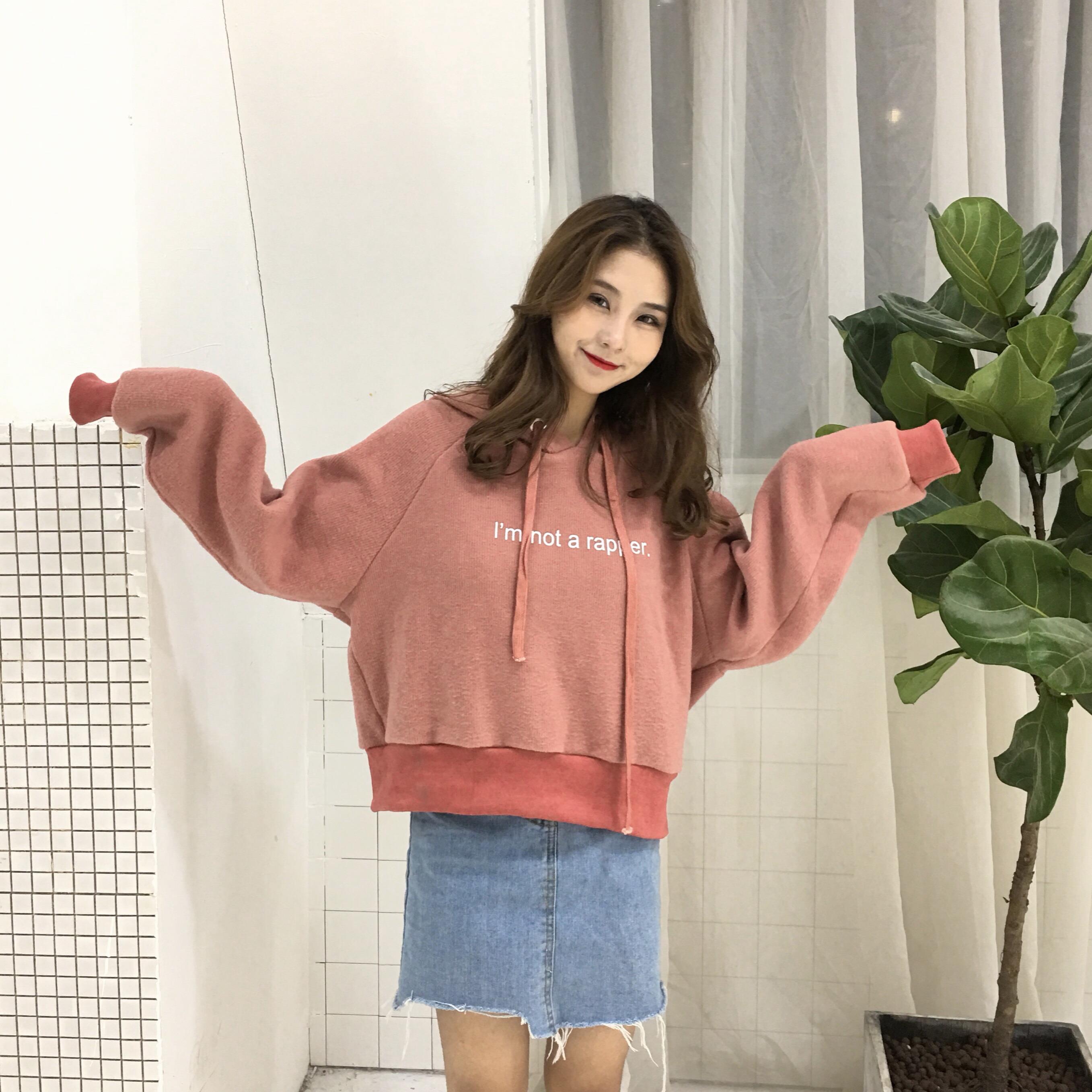 秋冬女裝韓版BF風寬松字母短款連帽套頭pp home超火衛衣上衣外套