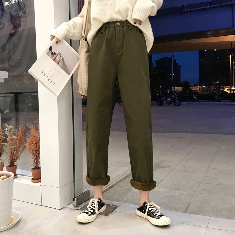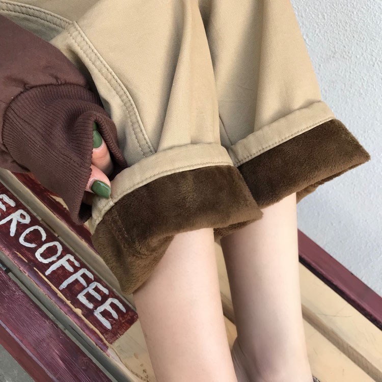 這是以不錯的工裝褲的面料加絨的,手感柔軟,上身非常舒服,不會硬