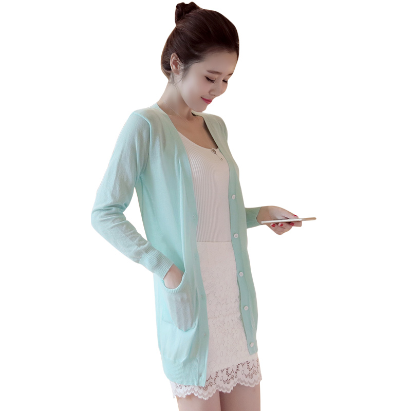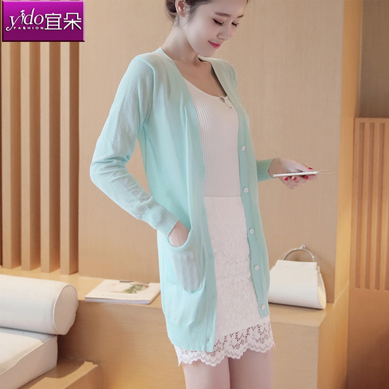 / 春夏針織衫開衫女中長款毛衣外搭女士長袖長款針織衫開衫外套女薄