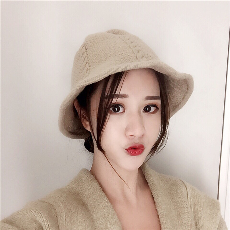 / 韓國chic秋冬百搭純色折疊彈力遮陽帽學生復古針織毛線帽子女