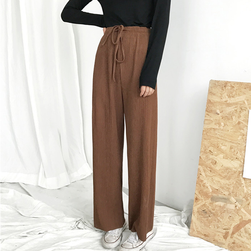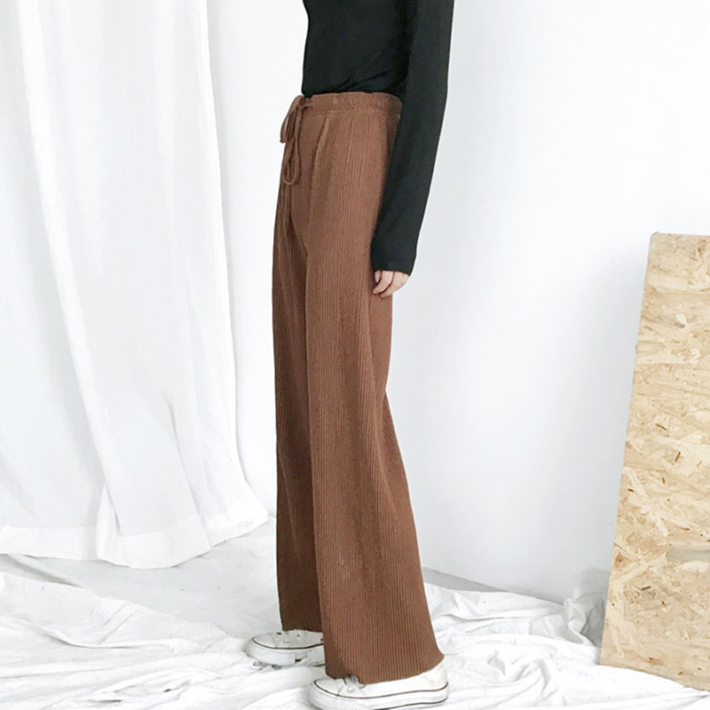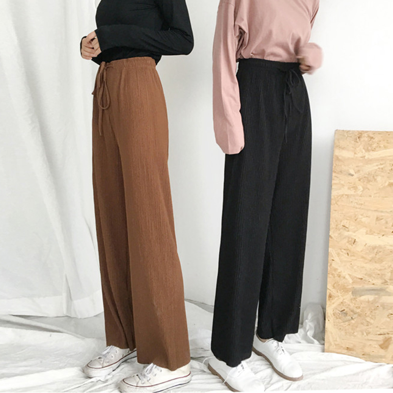 / 復古壓褶寬松闊腿褲秋裝女2018新款純色休閑褲學生高腰顯瘦長褲子
