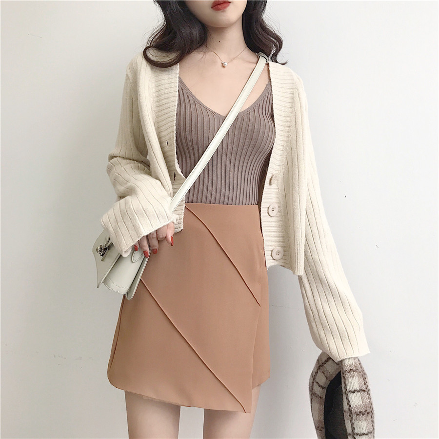馬海毛網紅毛衣女2018新款針織開衫外套冷淡風針織吊帶連衣裙套裝