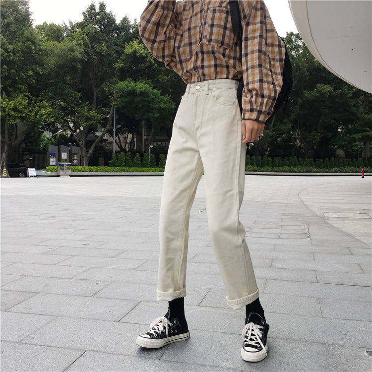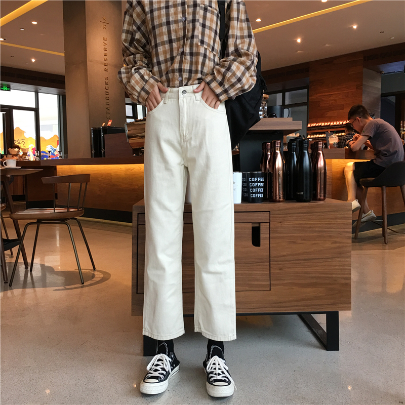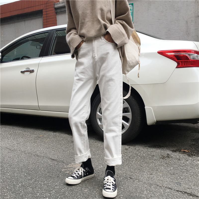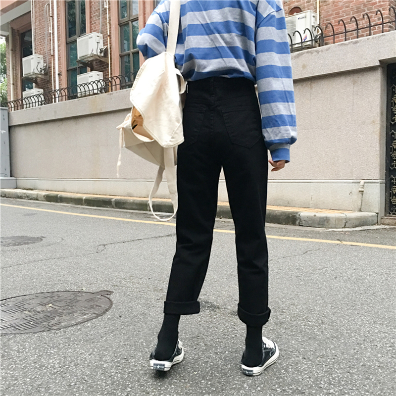 秋冬女裝2018新款寬松黑色休閑牛仔褲韓版學生高腰顯瘦直筒長褲子