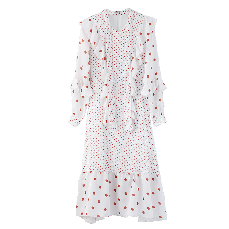 / 名媛波點連衣裙早秋2018新款法式少女長裙氣質復古顯瘦初戀裙子潮