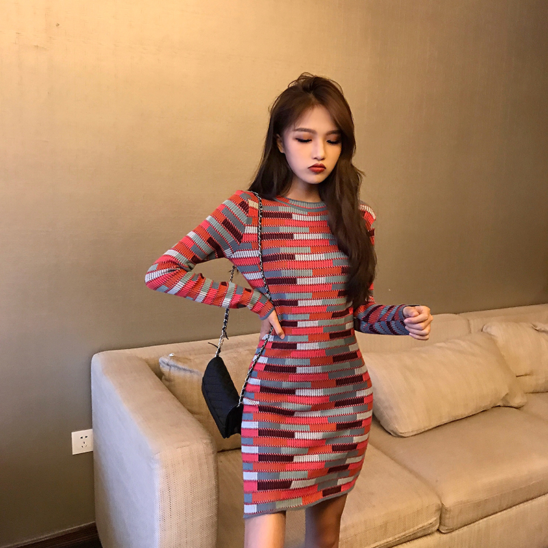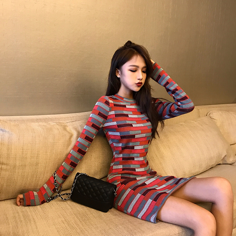 / 晚晚風時尚修身顯瘦百搭長袖秋季新款女裝短裙chic針織衫連衣裙潮