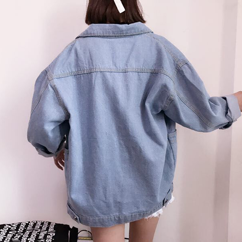 / 早秋新款女裝韓版寬松大口袋長袖淺藍色牛仔外套女學生休閑上衣潮
