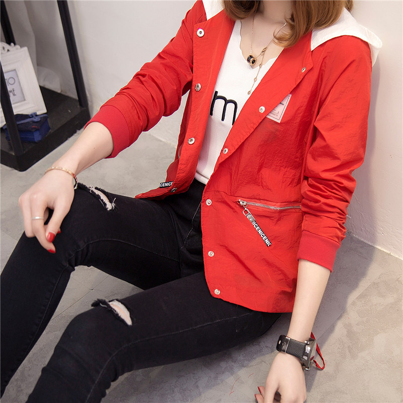 / 女裝春裝新款潮白色外套女夏寬松上衣韓版連帽薄款外套女百搭