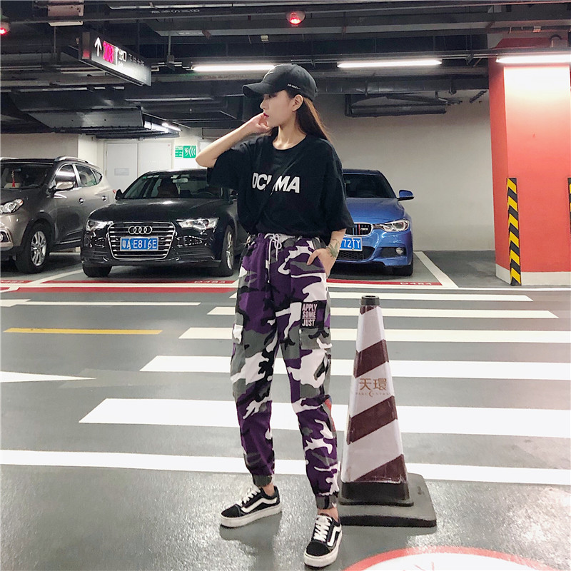 / 秋季女裝韓版日系迷彩寬松束腳褲高腰顯瘦哈倫褲運動休閑褲長褲潮