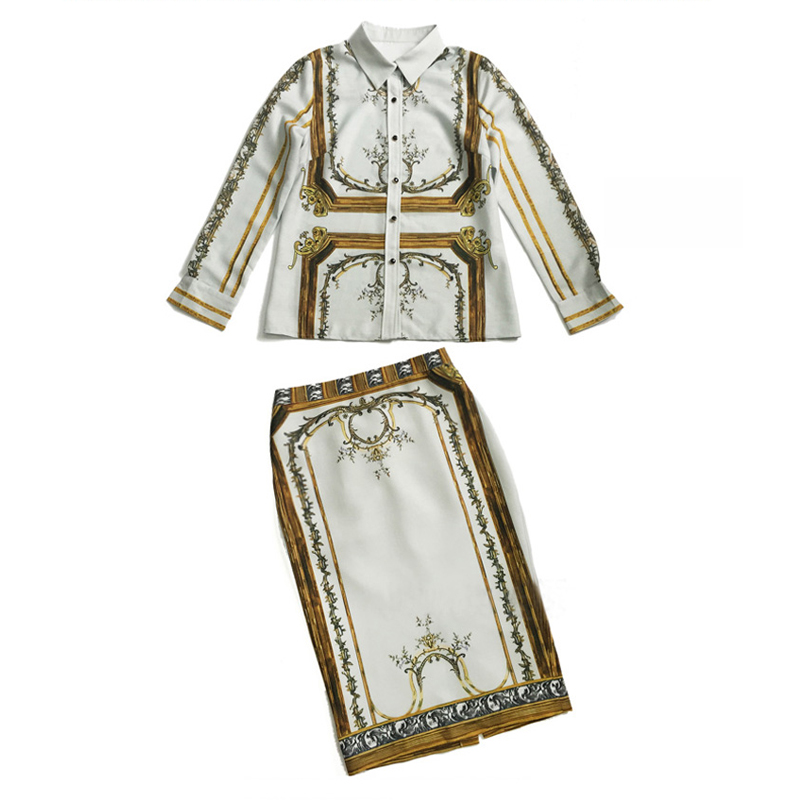 名媛氣質淑女2018新款女印花復古上衣半身裙子時髦兩件套時尚套裝