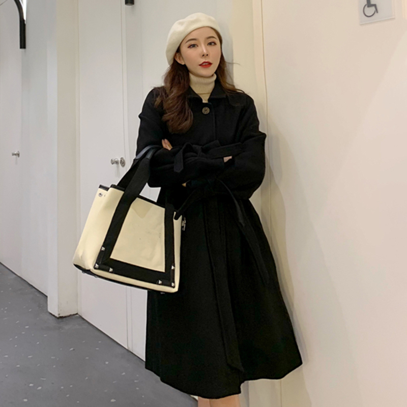 冬季女裝2018新款流行chic呢子大衣寬松中長款風衣收腰毛呢外套女