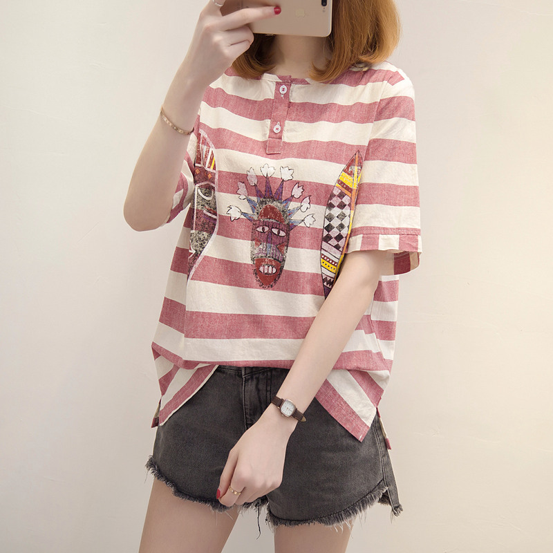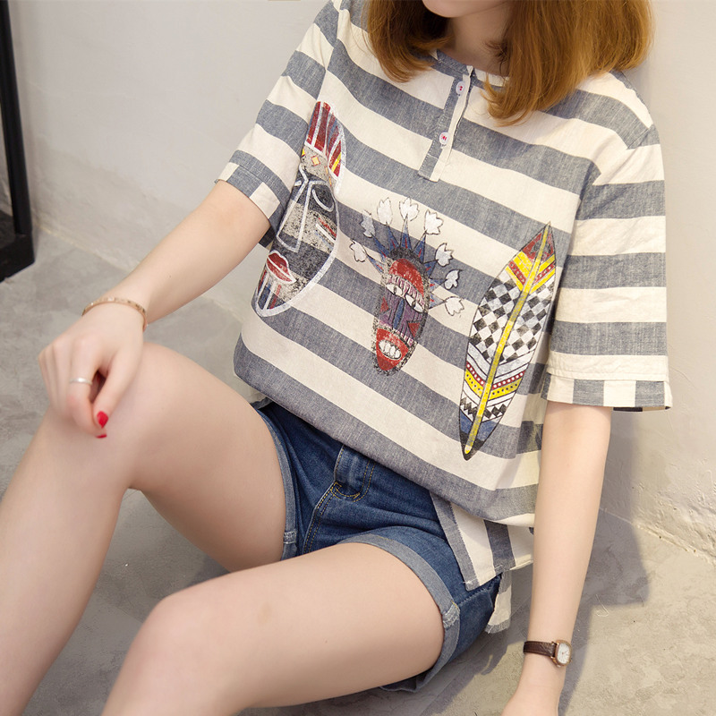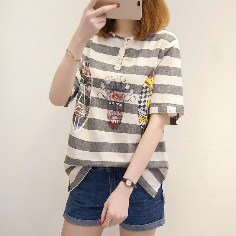 條紋t恤女夏裝新款女裝韓版創意個性體恤衫寬松短袖上衣女夏