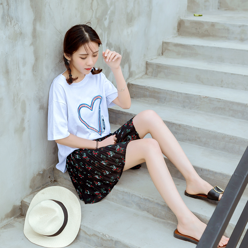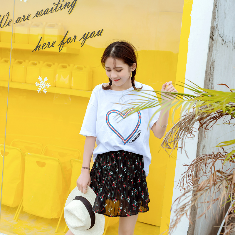 夏季新款女裝韓版霓虹刺繡t恤寬松短袖棉質學院風體恤上衣潮