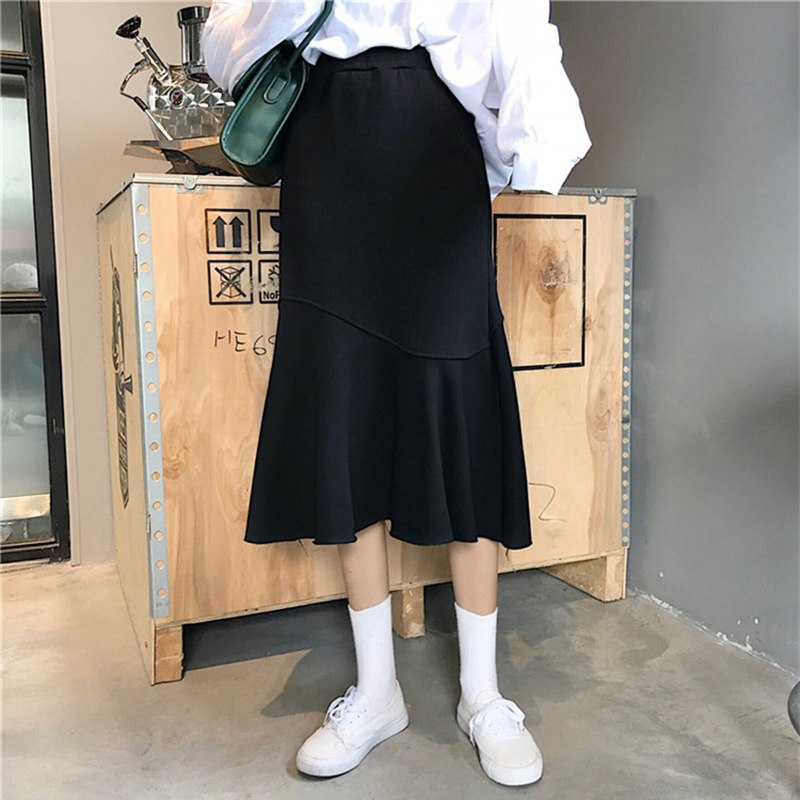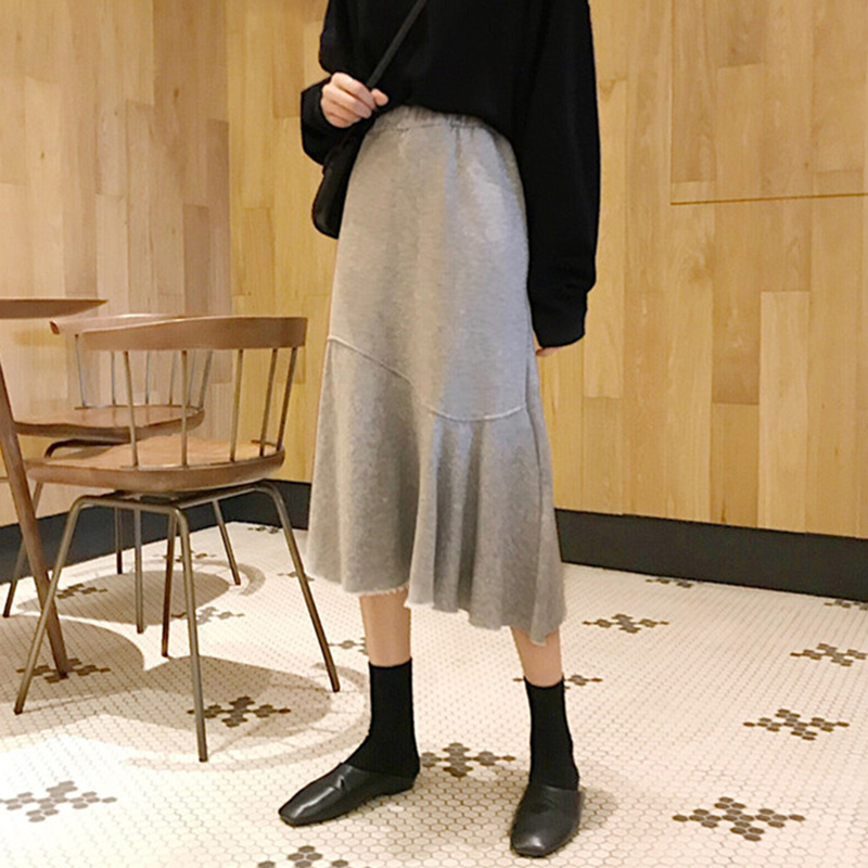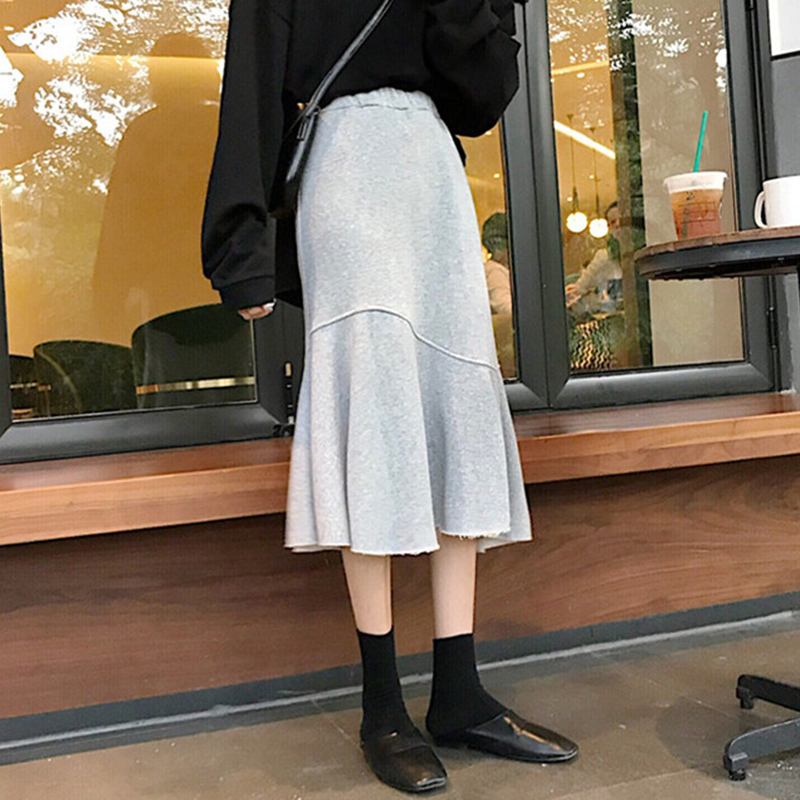 秋裝女2018新款韓版高腰不規則魚尾裙學生黑色顯瘦中長款半身裙子