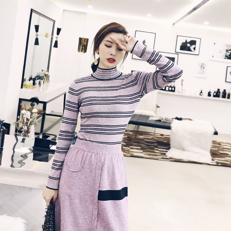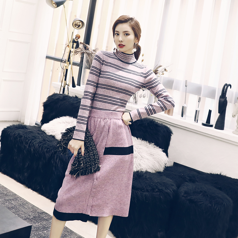針織套裝裙子毛衣春秋裝女2018新款時尚針織衫上衣半身裙兩件套潮