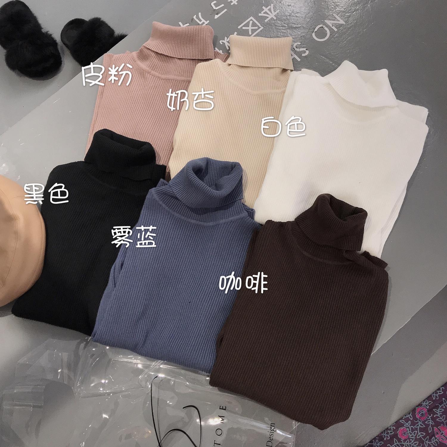 韓版套頭毛衣女秋冬2018新款加厚顯瘦高領包芯紗坑條長袖針織上衣