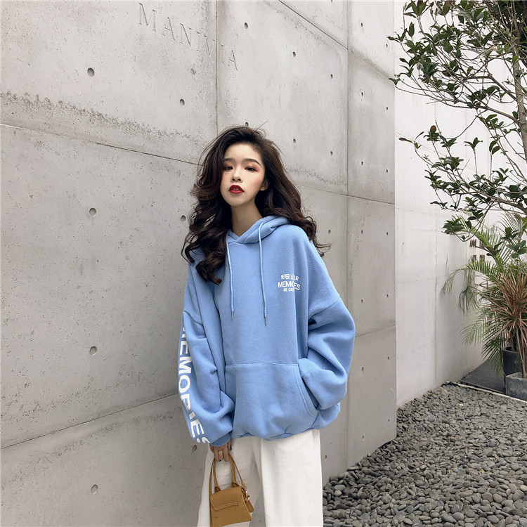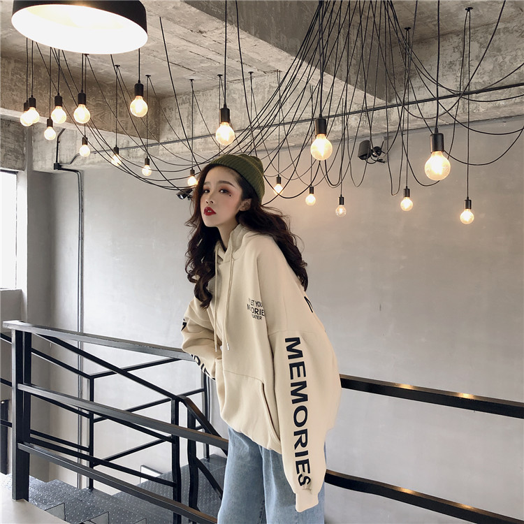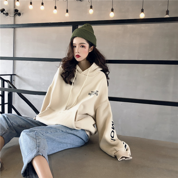 / 韓國chic袖子印花oversize寬松加絨加厚字母連帽衛衣女2018新款