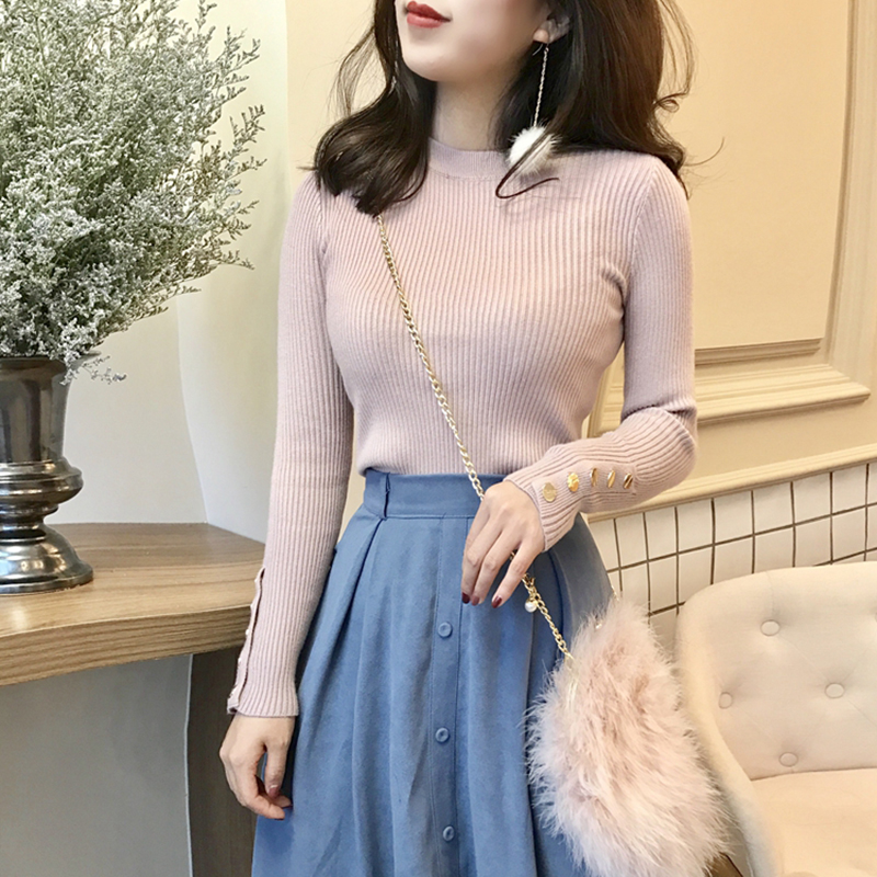 毛衣女2018新款秋裝港味chic溫柔長袖針織衫氣質修身純色打底上衣