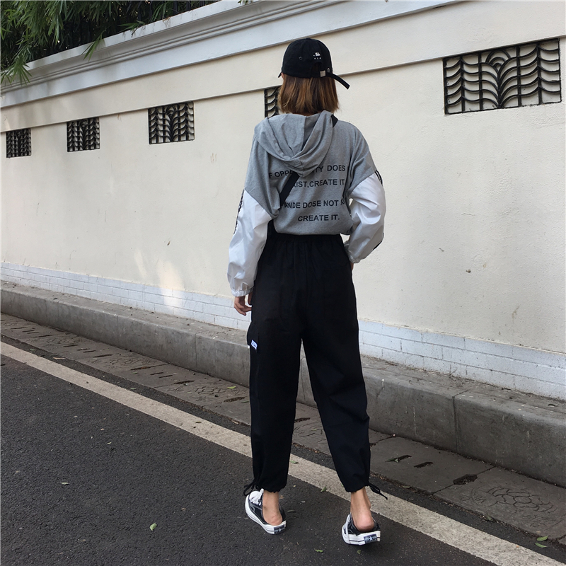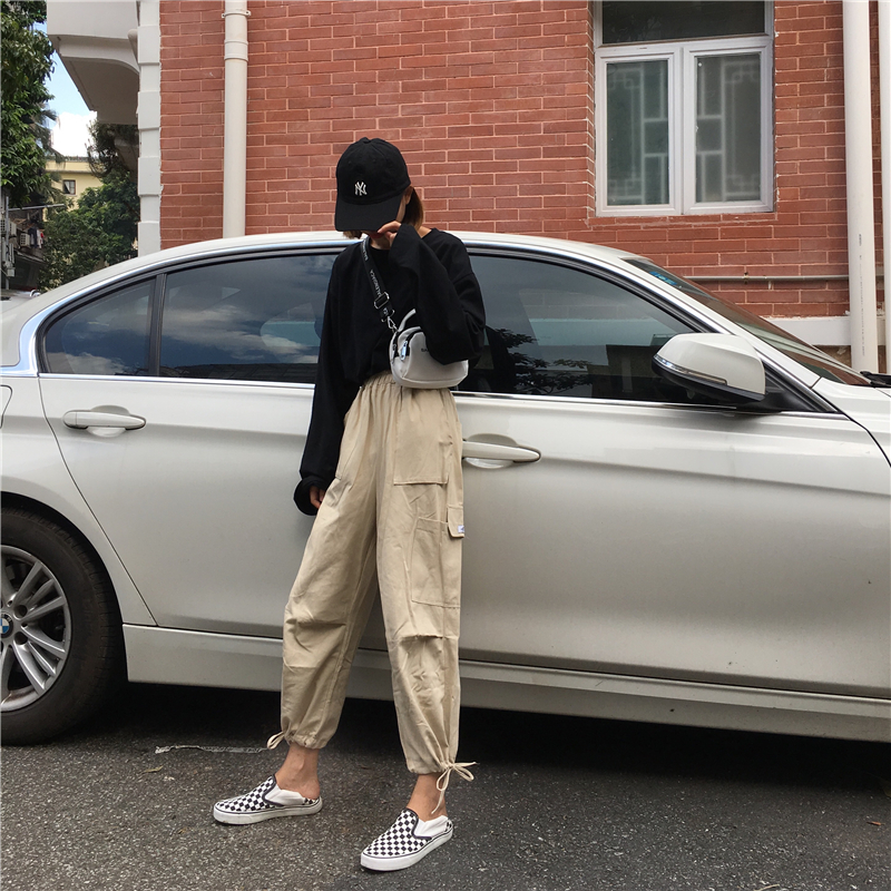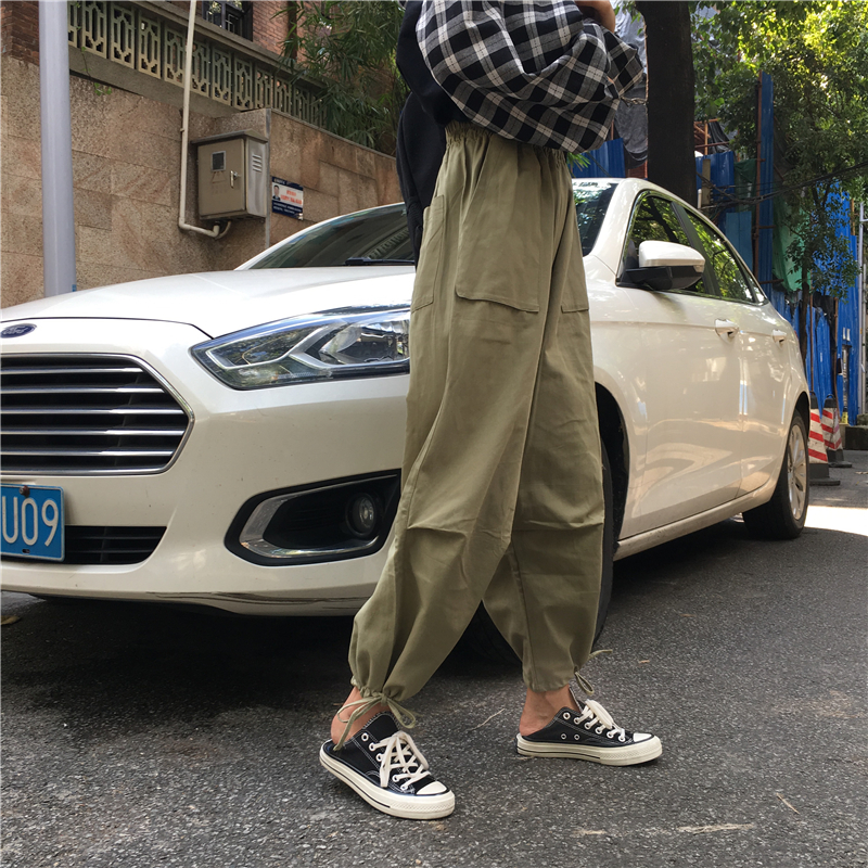 / 秋季女裝韓版BF風寬松工裝直筒褲高腰顯瘦哈倫褲燈籠褲休閑褲長褲