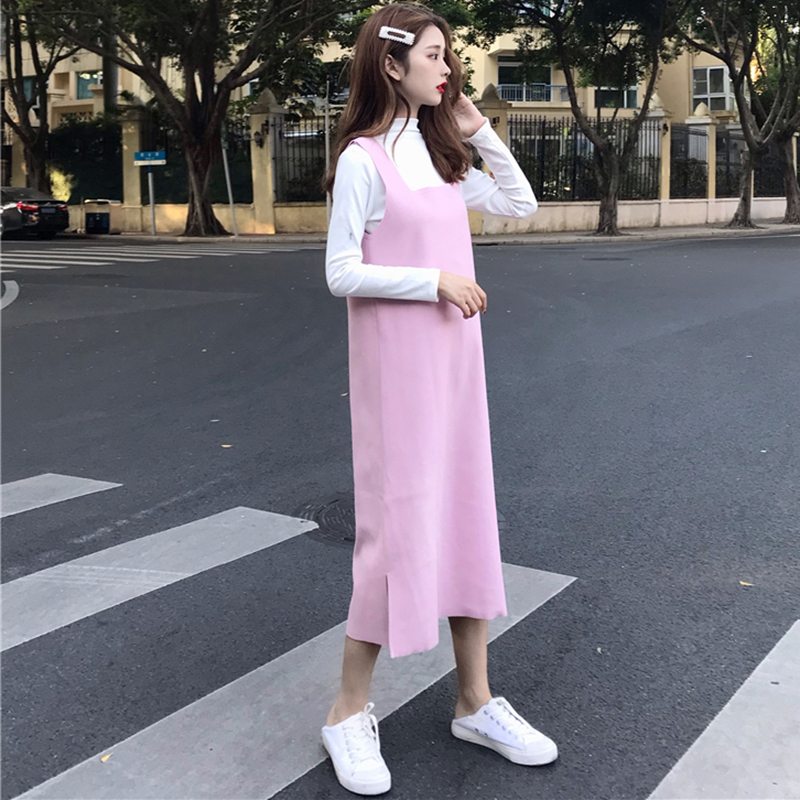 赫本風套裝女秋冬新款修身黑色長袖打底衫上衣顯瘦呢子背帶連衣裙