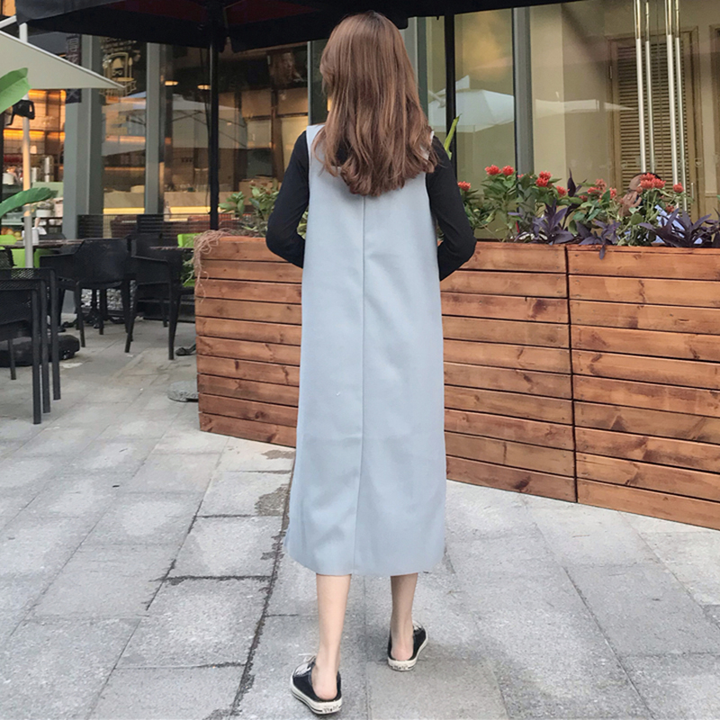 / 赫本風套裝女秋冬新款修身黑色長袖打底衫上衣顯瘦呢子背帶連衣裙