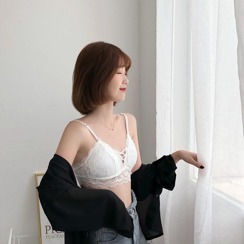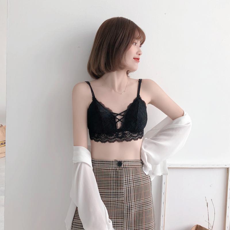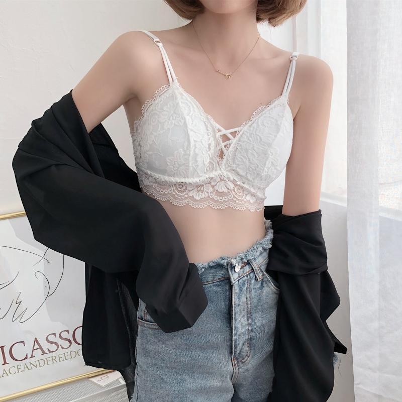 / 秋季韓版無鋼圈蕾絲性感聚攏裹胸內衣帶胸墊短款吊帶背心抹胸女士