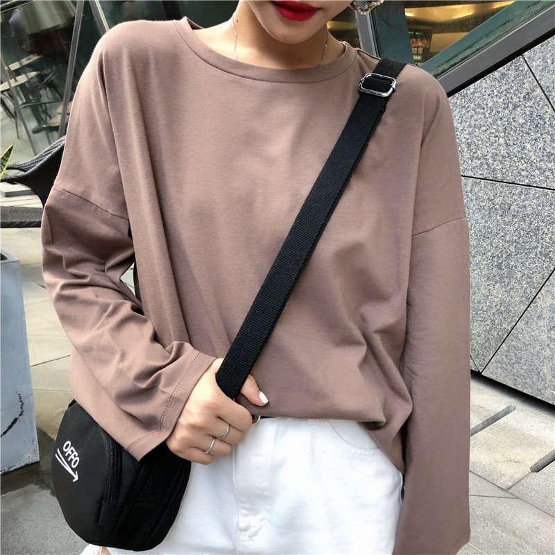 秋季女裝韓版基礎款簡約純色寬松百搭打底衫長袖休閑顯瘦T恤上衣