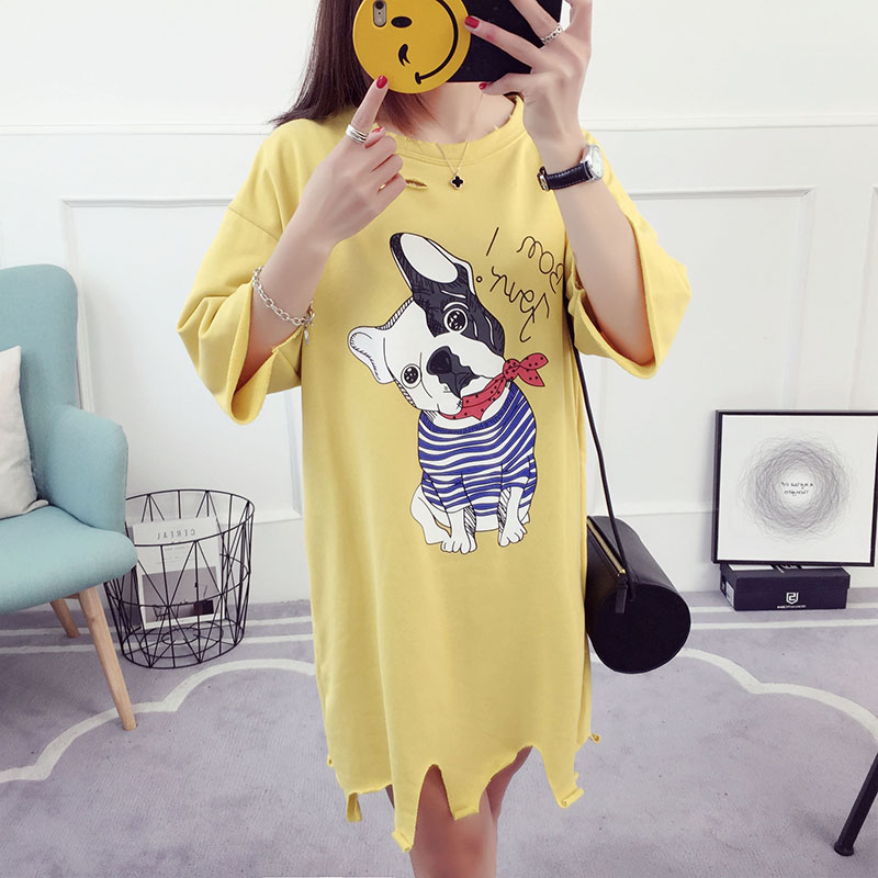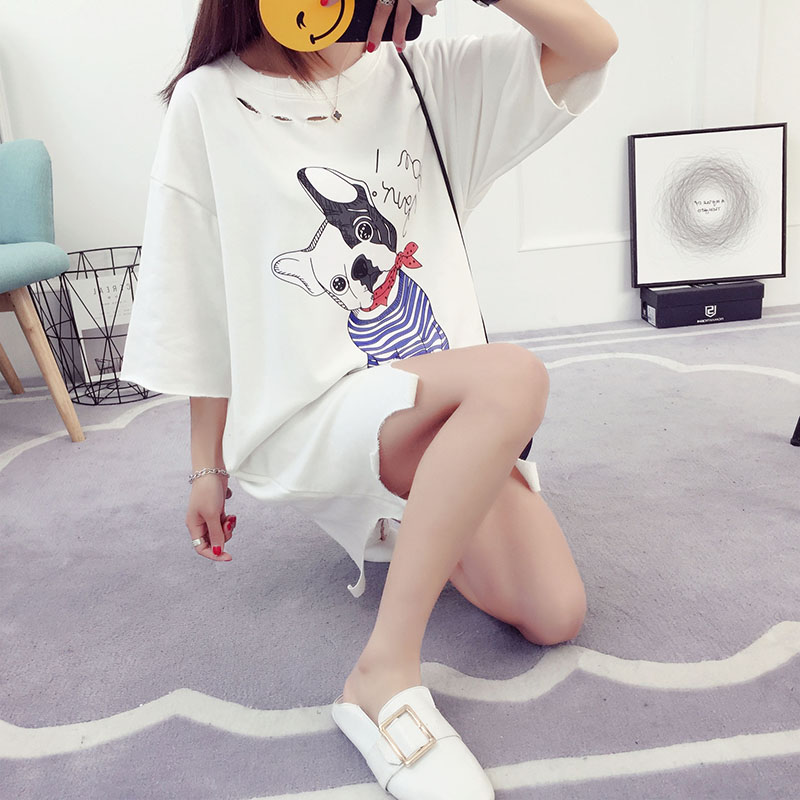 / 短袖t恤女中長款寬松韓版學生百搭半袖夏季上衣七分袖潮bf原宿風