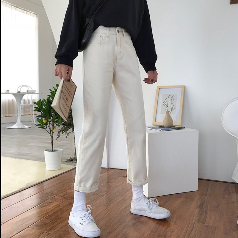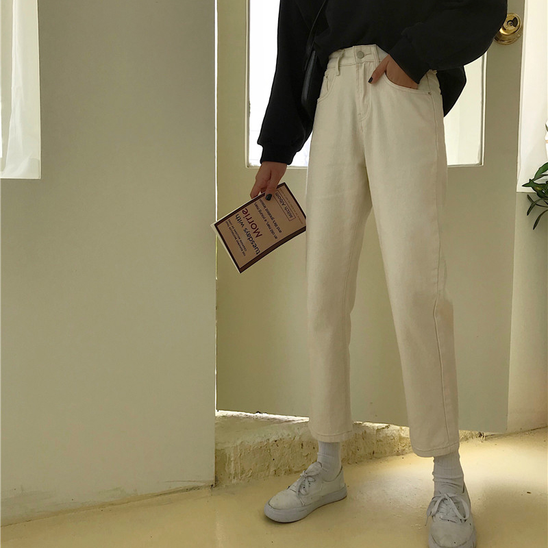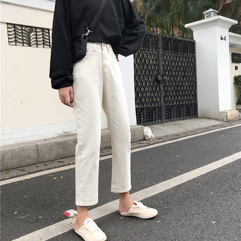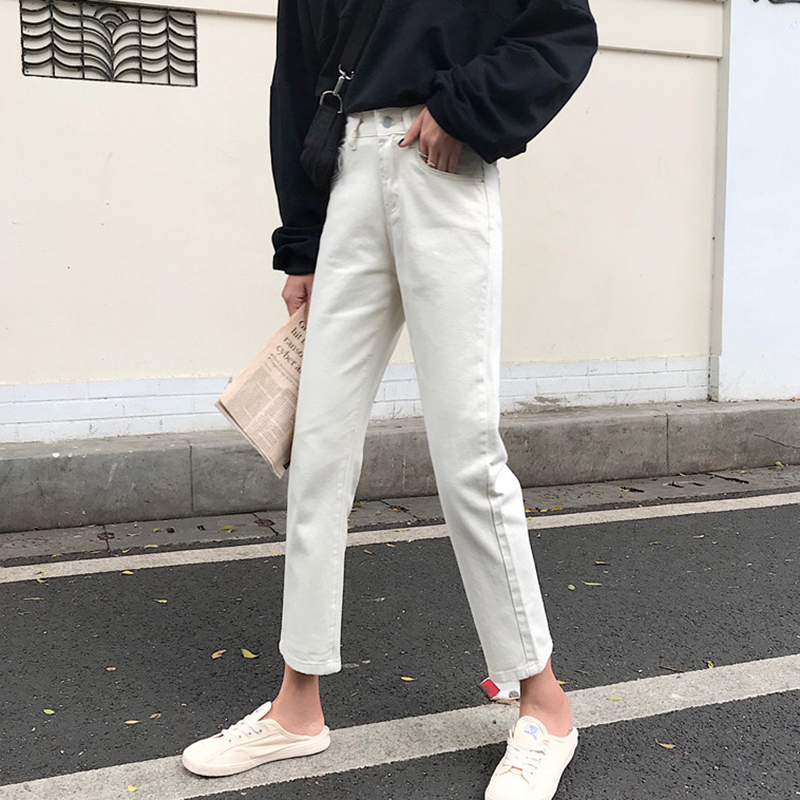 / 學生牛仔褲子秋裝女2018新款韓版寬松高腰直筒褲潮百搭休閑九分褲