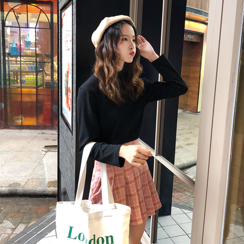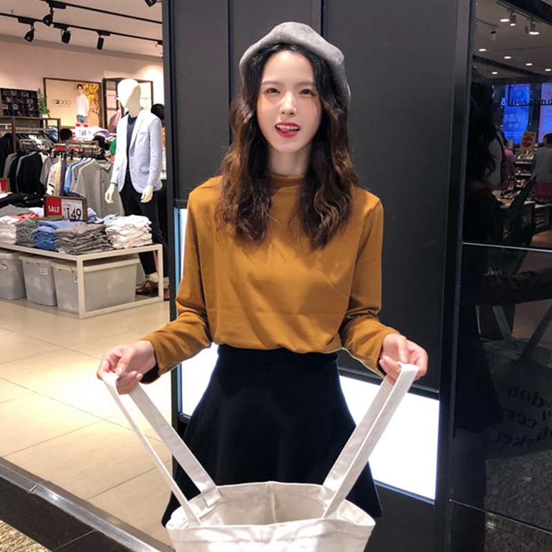 秋冬女裝韓版氣質純色修身顯瘦半高領長袖休閑打底衫T恤上衣學生