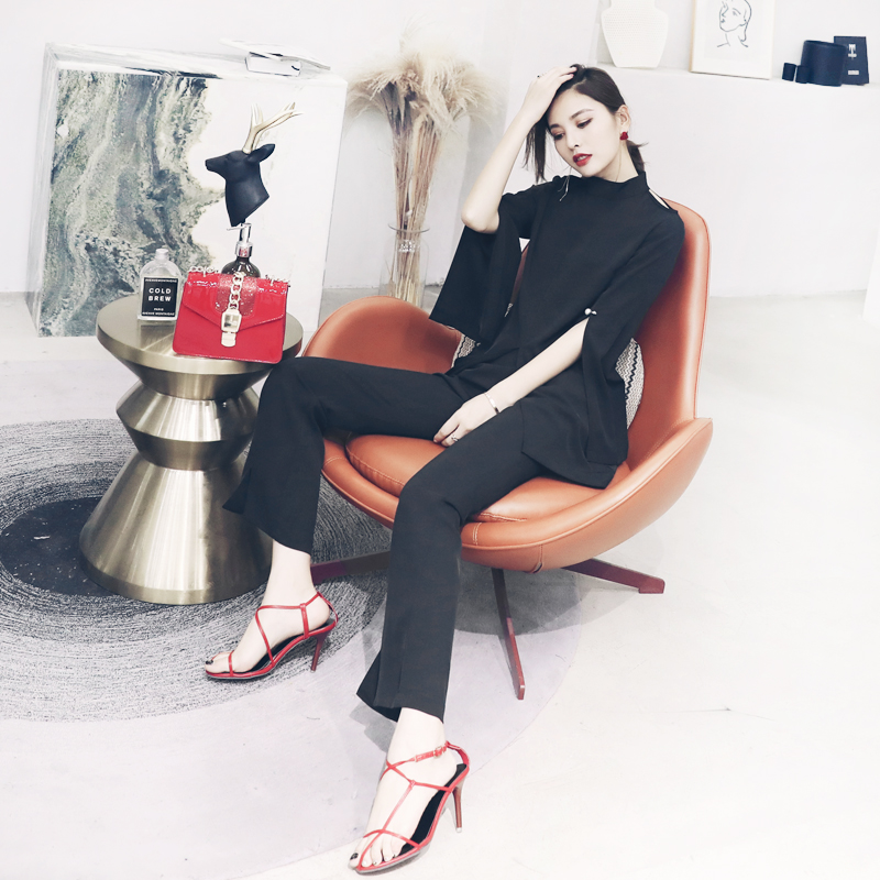 S秀2018夏季新款名媛女士氣質顯瘦時尚女神范微喇褲套裝兩件套潮