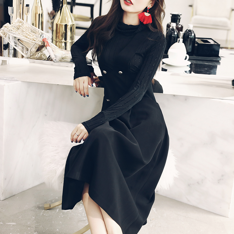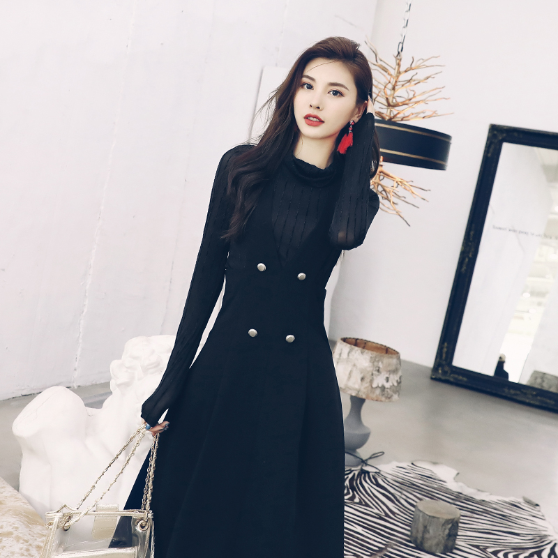 / 名媛2018秋季新款高領打底衫背帶裙兩件套高腰連衣裙長袖上衣套裝