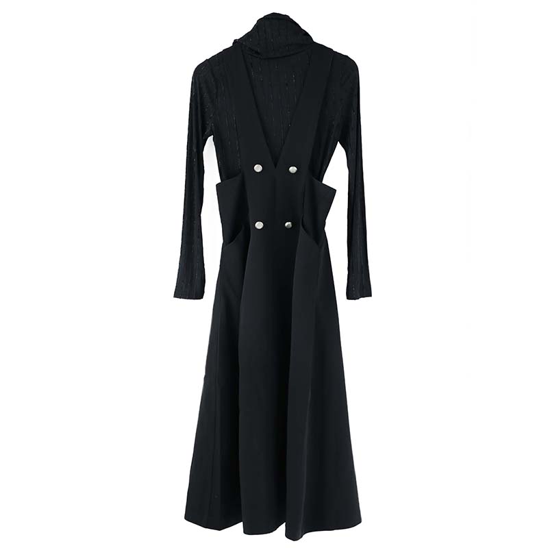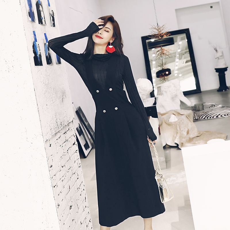 名媛2018秋季新款高領打底衫背帶裙兩件套高腰連衣裙長袖上衣套裝