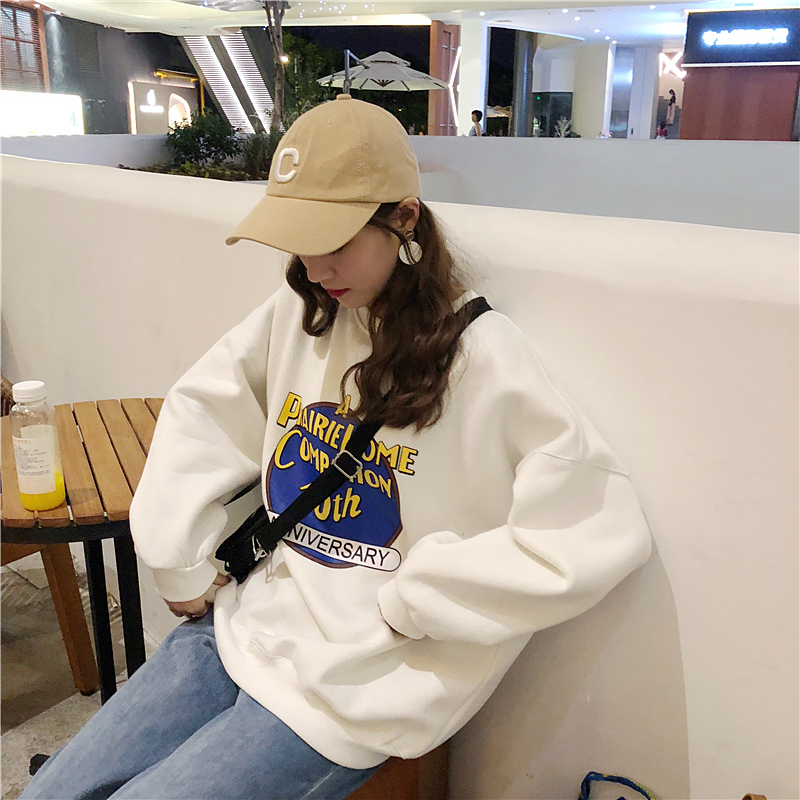 2018新款秋冬韓版原宿風字母寬松加絨加厚套頭超火衛衣上衣外套女
