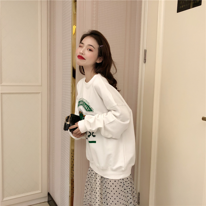 秋冬新款百搭印花衛衣時尚套裝網紗波點中長款百褶裙chic兩件套女