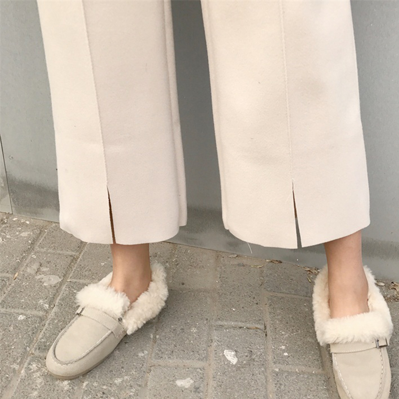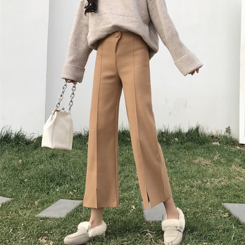 / 秋冬女裝2018新款韓版簡約高腰開叉純色闊腿褲氣質顯瘦九分休閑褲