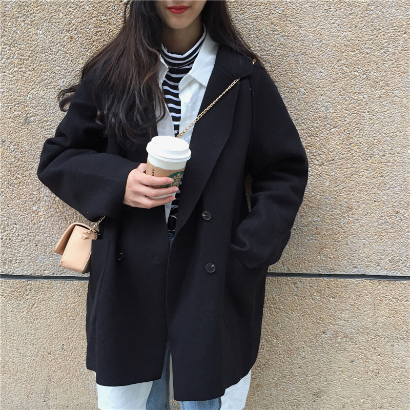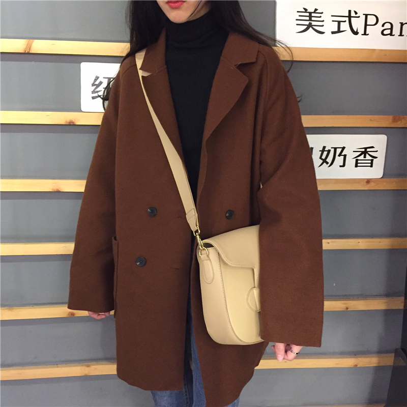 秋冬女裝2018新款韓版中長款BF風寬松毛呢外套赫本風休閑呢子大衣