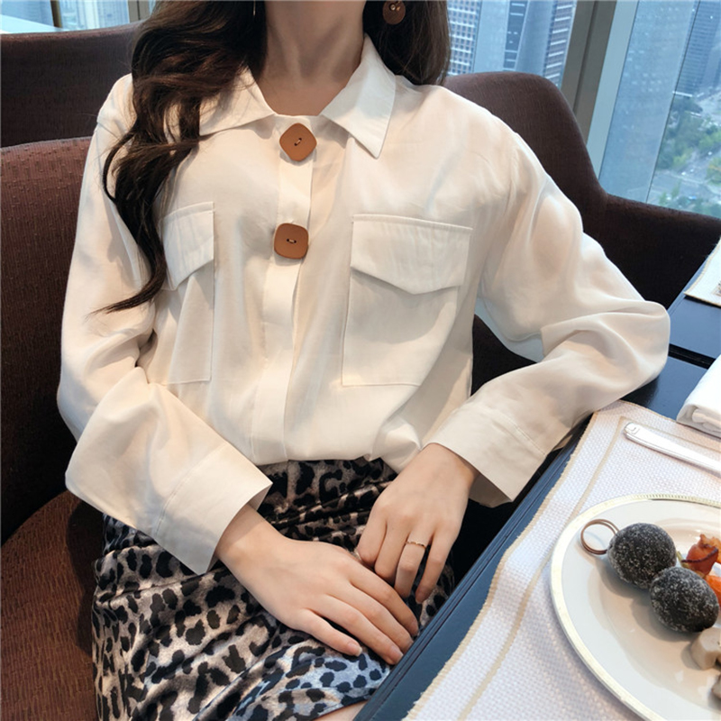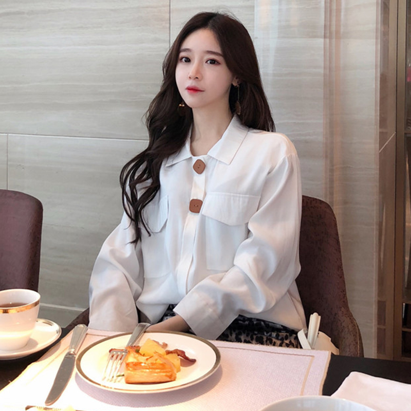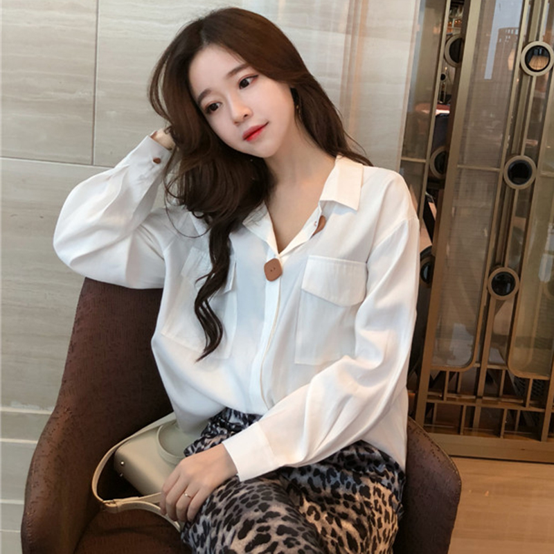 / 時尚簡約襯衣女秋冬裝2018新款韓版百搭寬松顯瘦雙口袋長袖襯衫潮