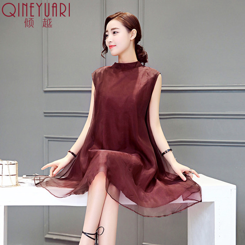 2017夏季新款氣質女裝OL時尚顯瘦無袖雪紡連衣裙女中長款A字裙子