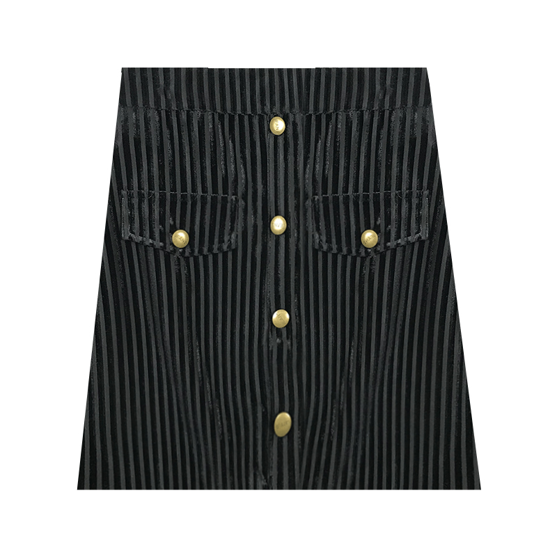 / 時尚燈芯絨條紋包臀短裙秋裝女新款顯瘦高腰排扣黑色a字半身裙子