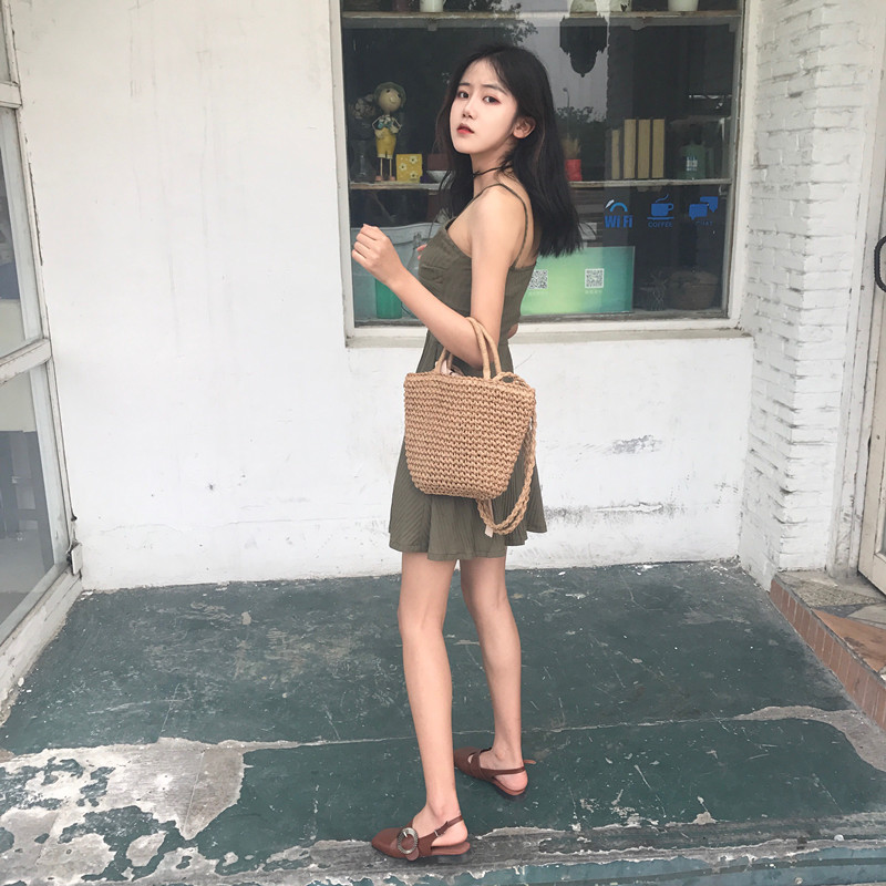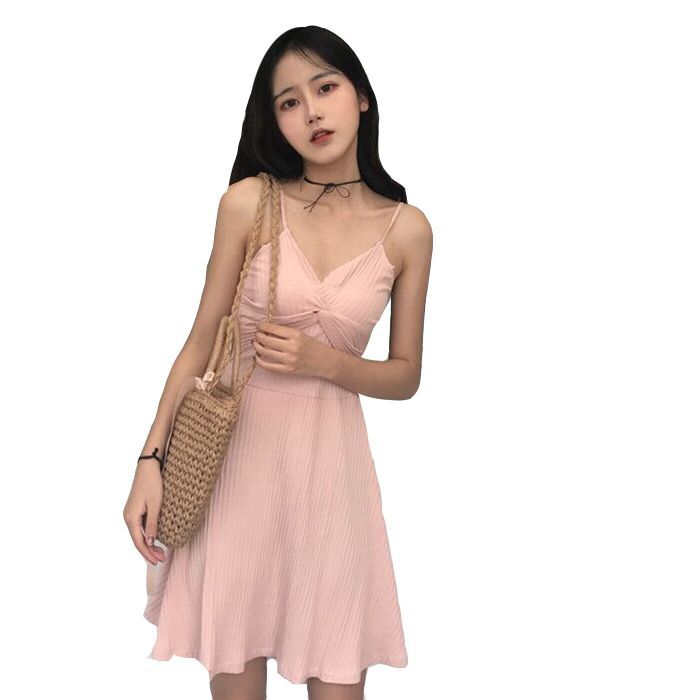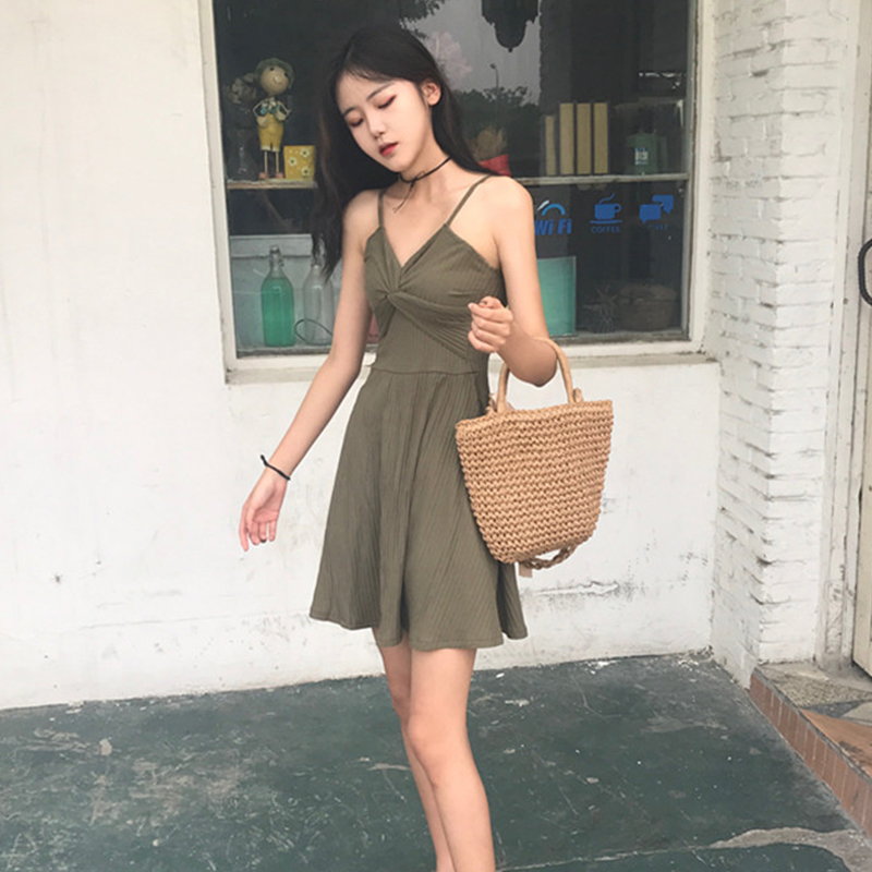 chic復古小性感V領交叉顯瘦修身連衣裙2018春夏新款內搭單穿都可