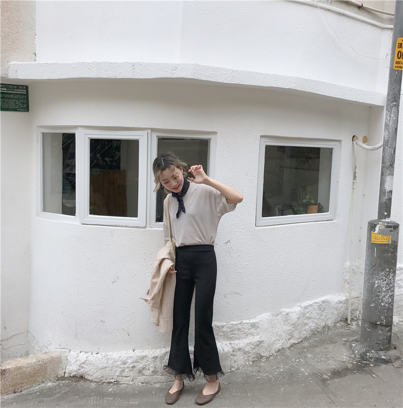 秋季新款復古韓國百搭純色顯瘦喇叭褲氣質風修身基礎休閑褲女裝潮