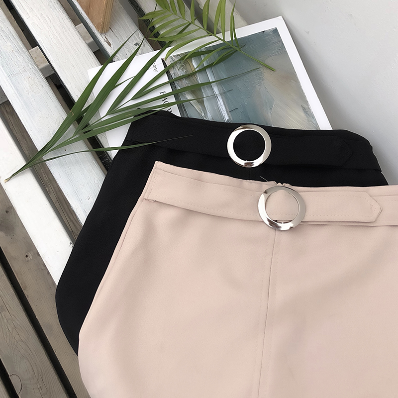 / 夏季新款女裝金屬扣氣質純色高腰顯瘦學生百搭A字半身裙包臀短裙