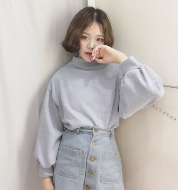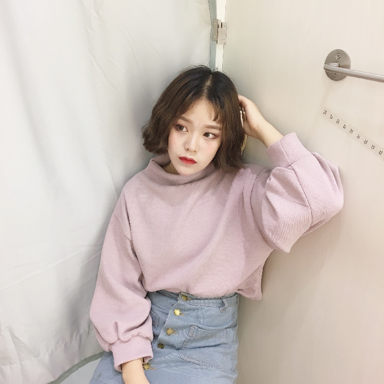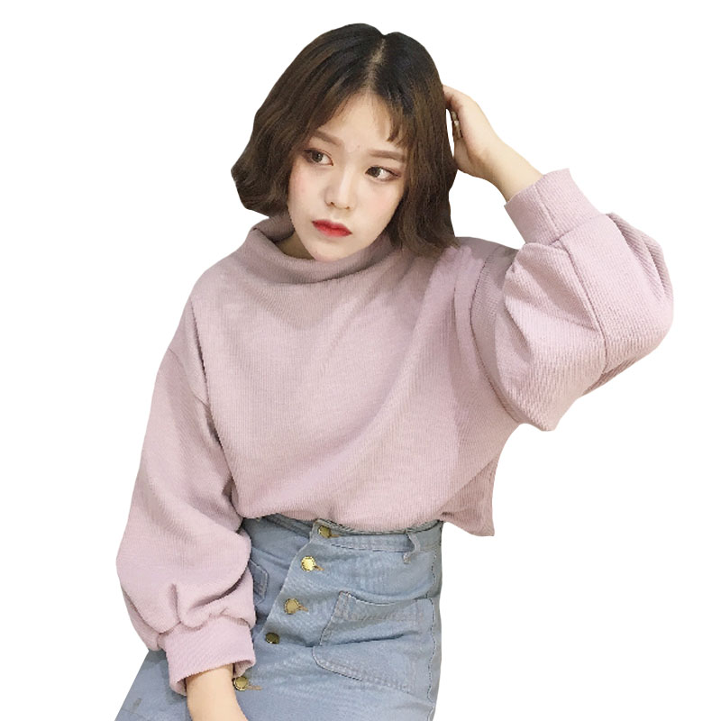 / 秋季韓版學院風小高領純色燈籠袖套頭衛衣學生寬松長袖上衣外套女