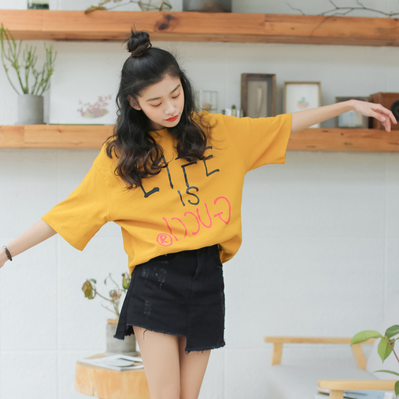 短袖t恤女寬松韓版學生百搭春夏新款字母印花圓領上衣小衫潮